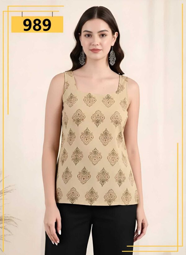 Elevate your everyday style with this sophisticated Beige Ethnic Printed Rayon Sleeveless Top from Rosa Fashion. Designed for modern women who appreciate comfort with elegance, this top is crafted from soft, breathable rayon fabric that feels light and smooth against the skin.