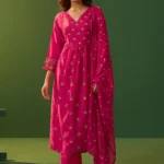 Refresh your ethnic collection with this elegant Pink Chinnon Kurta Set, designed to offer effortless charm and comfort. The calf-length flared kurta is crafted from soft, flowy Chinnon fabric adorned with a graceful all-over print that enhances its feminine appeal. Featuring a stylish V-neckline and comfortable 3/4th regular sleeves, the kurta creates a flattering silhouette with a beautiful drape.