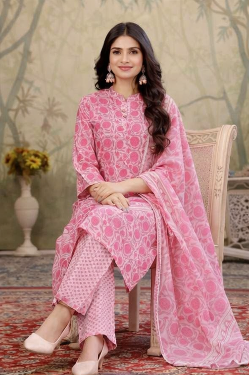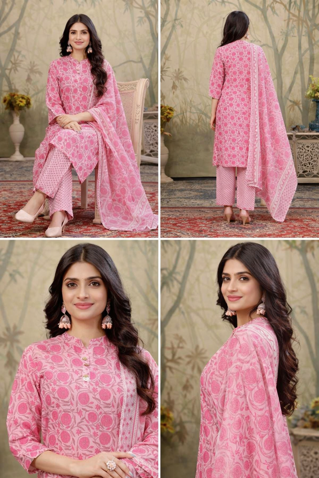 Refresh your ethnic collection with this beautifully designed pink pure cotton straight kurti set from Rosa Fashion. Crafted from soft and breathable cotton fabric, this outfit ensures maximum comfort while maintaining a stylish and polished appearance.