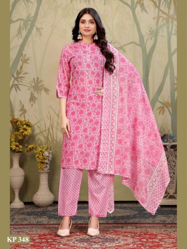 100 reviews for Pink Multicolor Pure Cotton Kurti Pant Dupatta Set