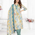 This ready-made set comes with matching cotton printed pants and a beautifully patterned cotton dupatta, creating a perfectly coordinated look for any occasion.