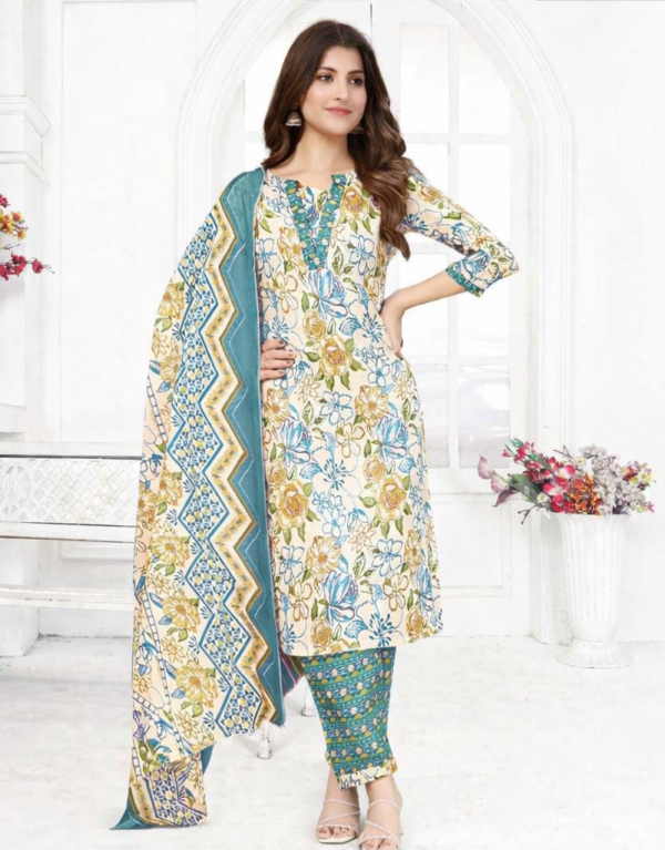 Pure Cotton Printed Straight Kurti Set with Pant & DupattaPure Cotton Printed Straight Kurti Set with Pant & Dupatta