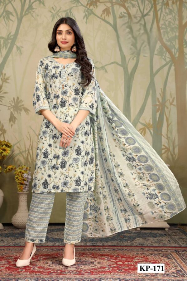 Refresh your wardrobe with this beautifully designed sage green multicolor cotton kurti set from Rosa Fashion. Made from high-quality pure cotton fabric, this outfit ensures all-day breathability and comfort, especially perfect for summer and daily wear.